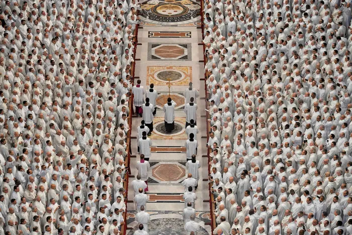 Archbishop Rino Fisichella presides over Sunday's mass instead of Pope Francis, the Vatican, February 23, 2025. Picture: Vatican Media, Simone Risoluti, Handout via Reuters