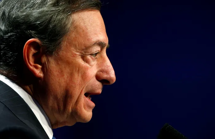 Italy Prime Minister Mario Draghi speaks in Frankfurt, Germany.