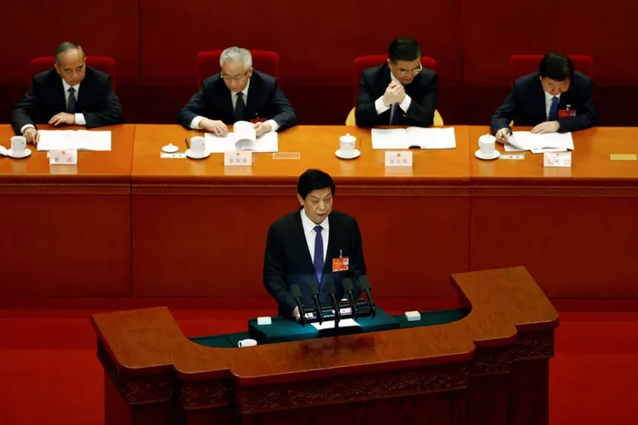 National People's Congress (NPC) Standing Committee Chairman Li Zhanshu speaks at a plenary session of the NPC at the Great Hall of the People in Beijing, China. Picture: Reuters/Carlos Garcia Rawlins