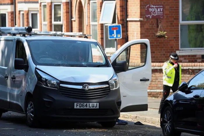 An officer walks near a van in a police cordon on the Bentinck Road following a major incident in Nottingham city centre, Nottingham, Britain, June 13, 2023. Picture: Reuters, Phil Noble