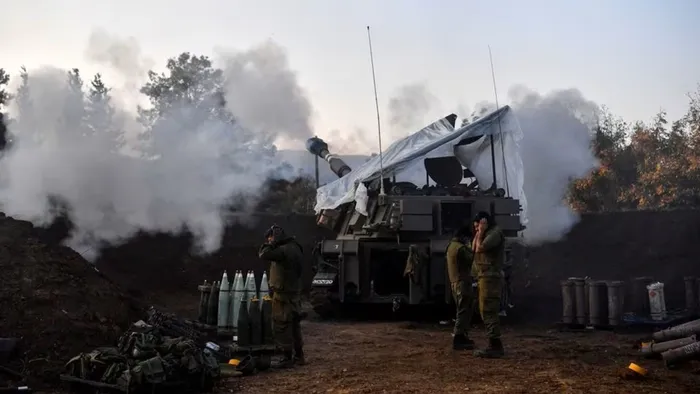 Israeli soldiers stand by as a mobile artillery unit fires on the Israeli side of the Israel-Lebanon border. File picture: Reuters, Gil Eliyahu