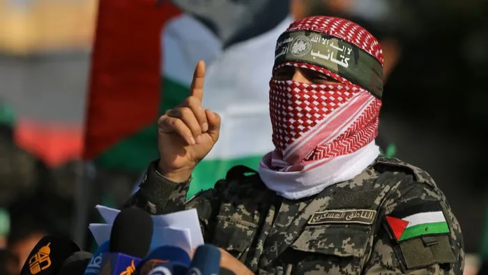 Abu Ubaida, the spokesman of the Izz el-Deen al-Qassam Brigades, gestures as he speaks during an anti-Israel military show in the southern Gaza Strip, November 11, 2019. File picture: Reuters, Ibraheem Abu Mustafa