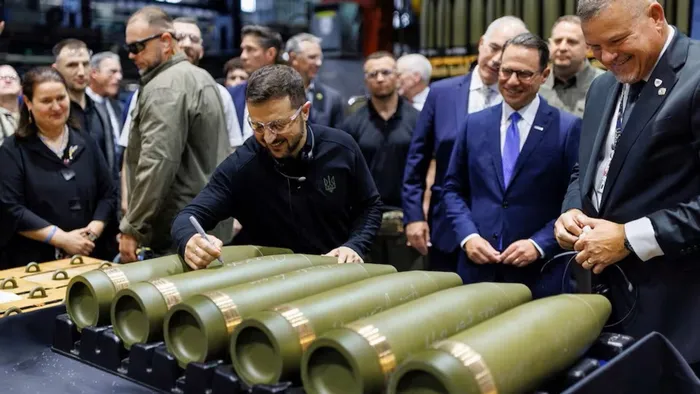 Ukrainian President Volodymyr Zelenskiy visits the Scranton Army Ammunition Plant in Scranton, Pennsylvania, US, September 22, 2024. Picture: Commonwealth Media Services, Handout via Reuters