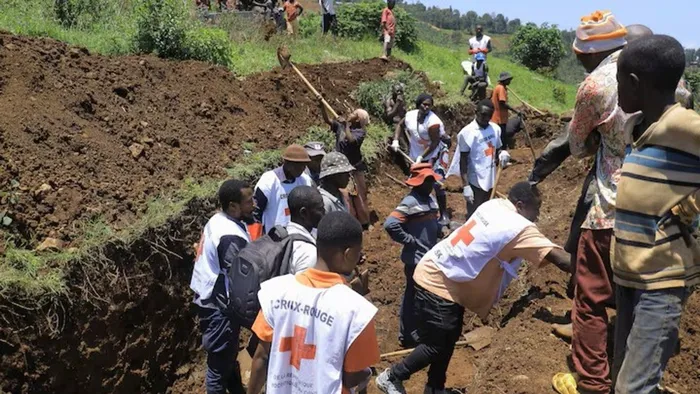 Members of the International Committee of the Red Cross (ICRC) dig a common grave at the Musigoko cemetery for the burial of bodies, following clashes between M23 rebels and the Armed Forces of the Democratic Republic of the Congo, in Bukavu, eastern Democratic Republic of Congo, February 19, 2025. Picture: Reuters, Victoire Mukenge