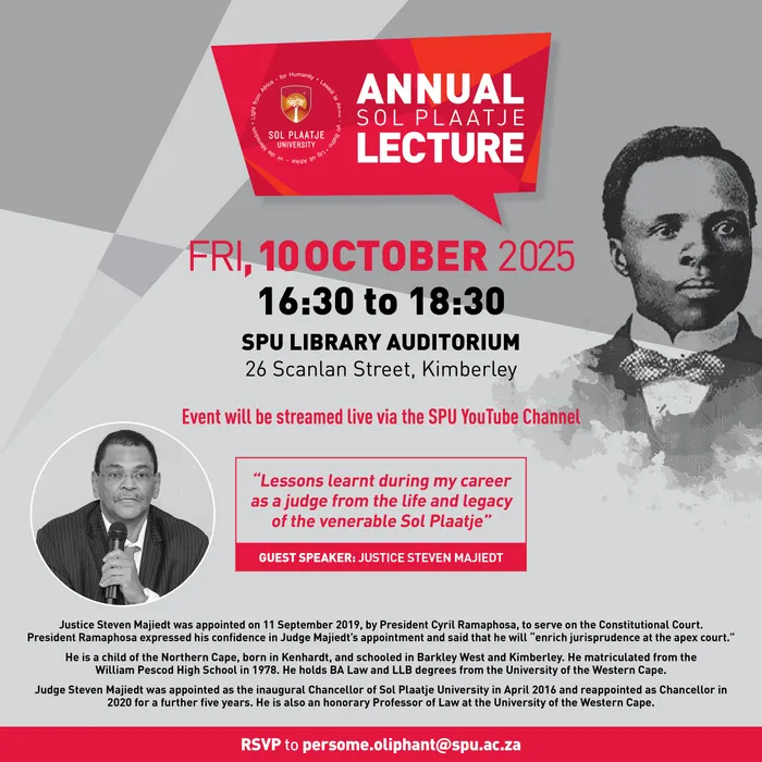 Justice Majiedt, a revered legal mind and advocate for justice, has completed two terms as chancellor and epitomises the very values that Plaatje championed: a commitment to intellectual excellence infused with humility, robust leadership anchored in justice, and a service ethos imbued with humanity. His presentation is expected to weave personal insights from his own judicial experiences with the enduring ideals of Plaatje, emphasising their relevance in today's society.