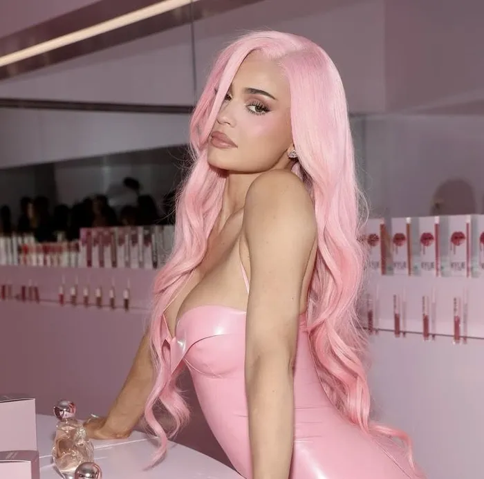 Jenner looked like a real-life Barbie doll as she wore a pink weave with a maxi latex pink dress with matching pink heels, as she matched with the theme of her launch.