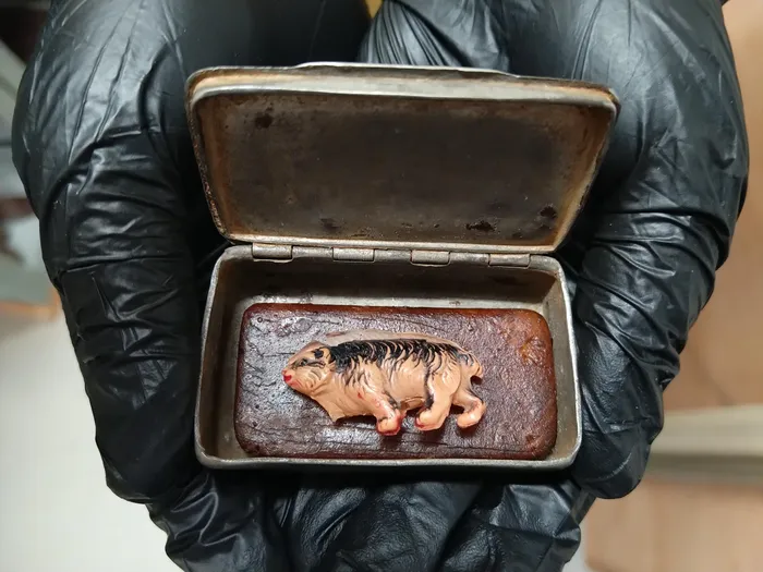 Among the donated items is a pewter container holding a small piece of Boer soap and the misshapen rubber pig. “This is what Ouma Steyn played with in the camp,” Van Tonder recalls with a gentle smile. “This little pig was her hope.”