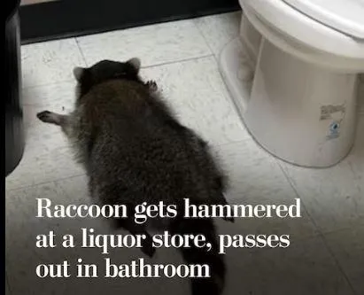 Sometime between when the store closed on a Friday evening and reopened Saturday morning, authorities said, the raccoon wiggled in through the ceiling of the Ashland store, triggering a motion sensor. The animal then began digging through the merchandise in storage and destroying 14 bottles of liquor: rum, scotch, whiskey, vodka, moonshine and even spiked eggnog.