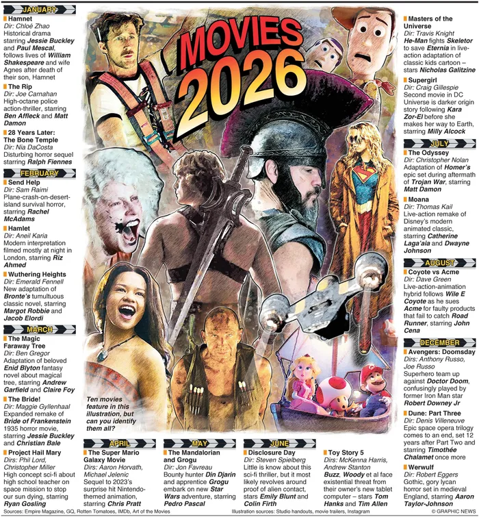 Graphic shows some of the most anticipated movie releases planned for 2026.