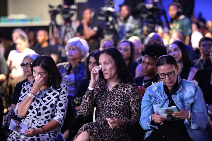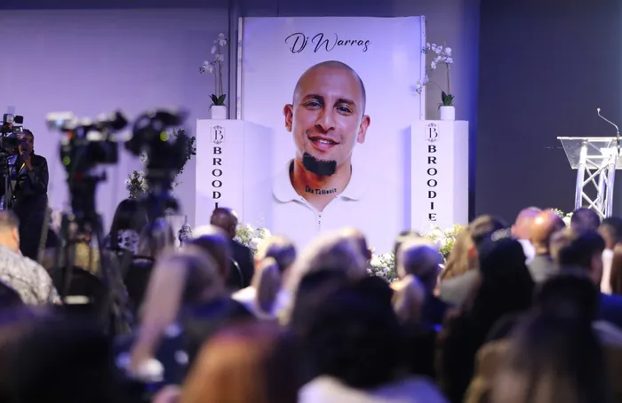 South Africa - Johannesburg - 19 December 2025. Family, friends and colleagues a South Africa - Johannesburg - 19 December 2025. Family, friends and colleagues at the memorial service of the murdered media personality Warrick DJ Warras Stock at The Galleria in Marlboro, Santon. Picture: Oupa Mokoena / Independent Newspapers