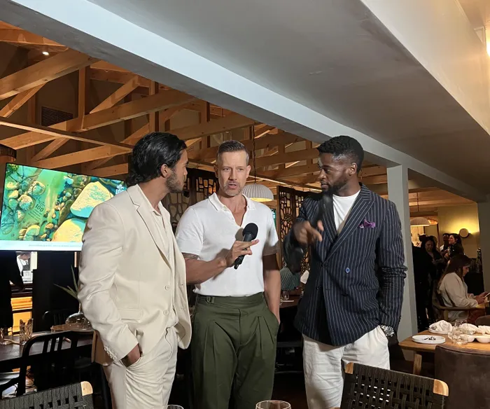 'Top Billing' presenters Fezile Mkhize, Ryle De Morny and Jonathan Boyton-Lee at Tintswalo Atlantic Hotel.