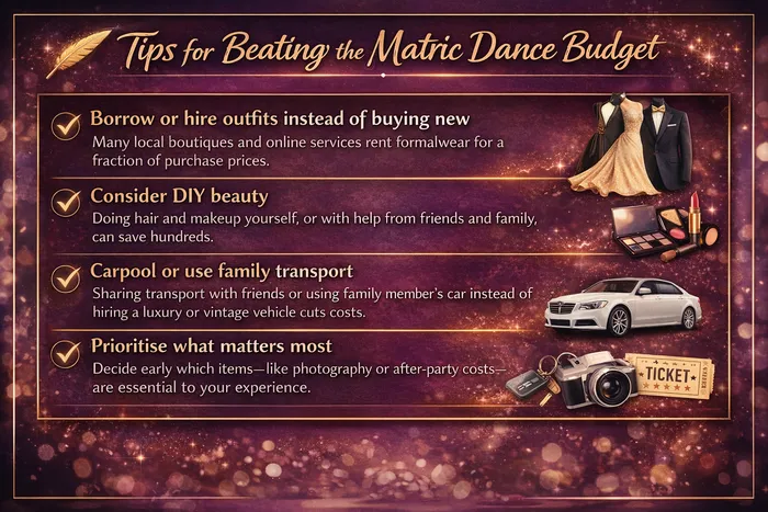 Beauty and styling services also differ. Some salons advertise make‑up and hair packages for matric dances from roughly R550 each, though professional packages are often more expensive. Transport can be a major line item: specialist matric‑dance or vintage‑car hire firms list classic‑car packages from about R3,800 for a limited period, rising to R7,300 or more for longer slots; demand and car type affect the final price.