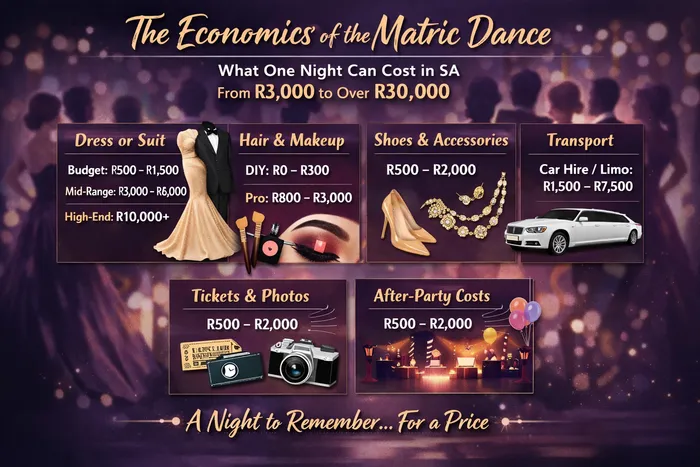 WHAT was once a simple end‑of‑school celebration has become a pricey event, with pupils and parents budgeting from a few thousand rand to more than R30,000 for the night. From gowns and suits to beauty treatments, transport and photography, social‑media posts reveal a wide – and sometimes eye‑watering – range of expenditures.
