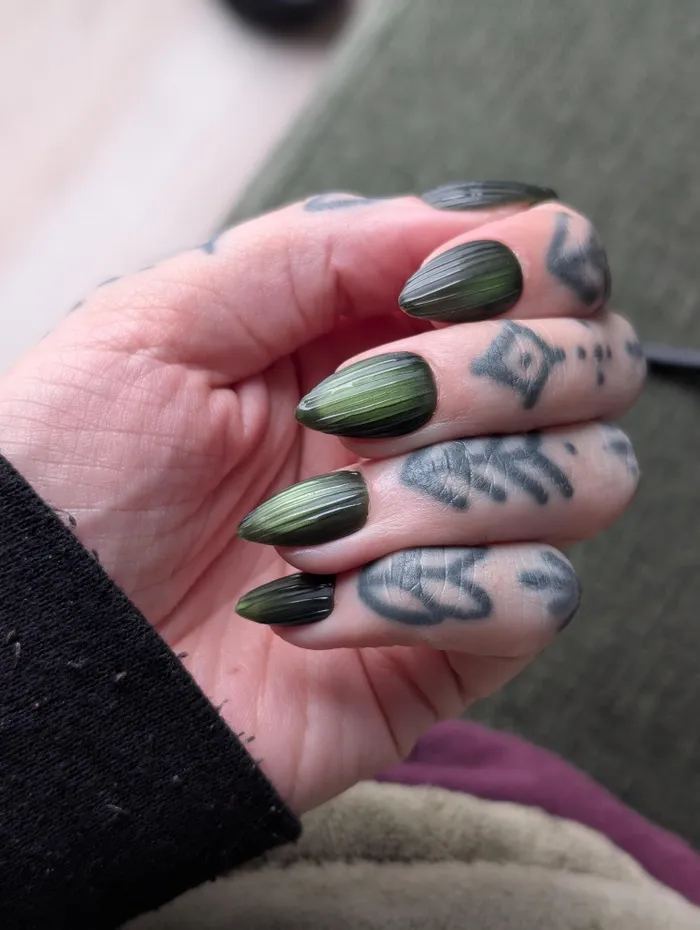 The ribbing: This is the magic step. A thick, clear gel is used to draw vertical 3D lines over the nail. This creates those signature "ribs" that catch the light whenever you move your hands.
