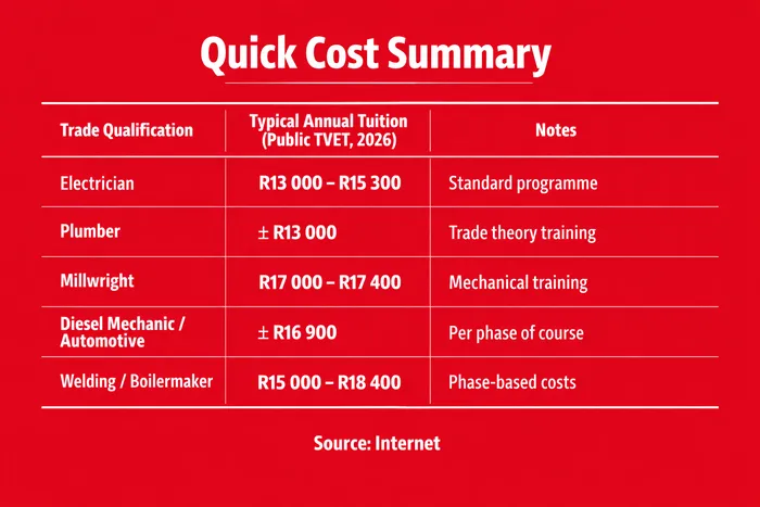 TVET colleges in South Africa are significantly cheaper than universities. For many students, the National Student Financial Aid Scheme (NSFAS) can cover almost all study-related costs, including tuition, registration and living allowances.