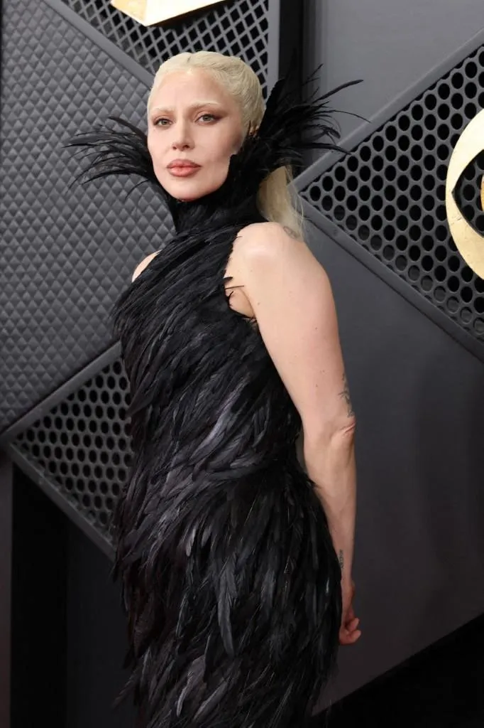Lady Gaga made an entrance that can only be described as a soaring triumph. Nominated for seven awards, including Record of the Year for "Abracadabra," Gaga turned heads in a custom black feathered gown with a high neck and a massive train by Matières Fécales. With bleached brows and a medieval-inspired platinum updo, she proved that no one does "avant-garde" quite like Mother Monster.