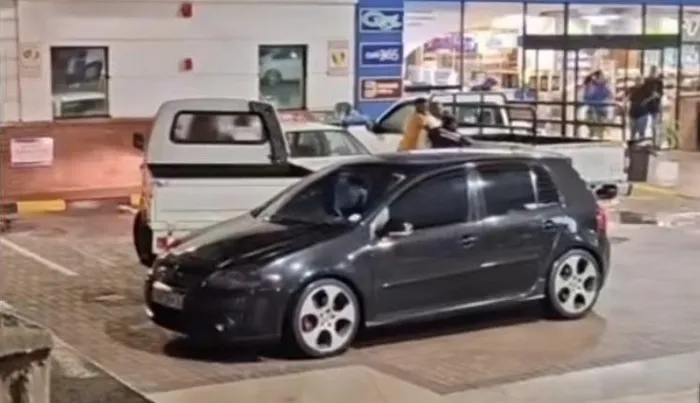 A black Volkswagen Golf 5 GTI was significantly damaged in a parking lot altercation that took place at an Engen garage over the weekend.