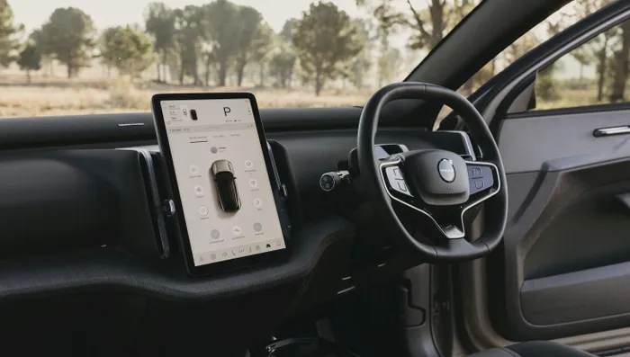 Never mind that the climate system requires screen inputs for all of its functions; even the glovebox requires operation via this large 12.3-inch vertical touchscreen. The system boasts built-in Google services, but also supports Apple CarPlay.