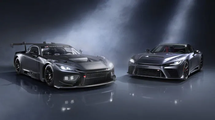 Toyota GR GT3 racecar (left) and GT road car prototype (right).