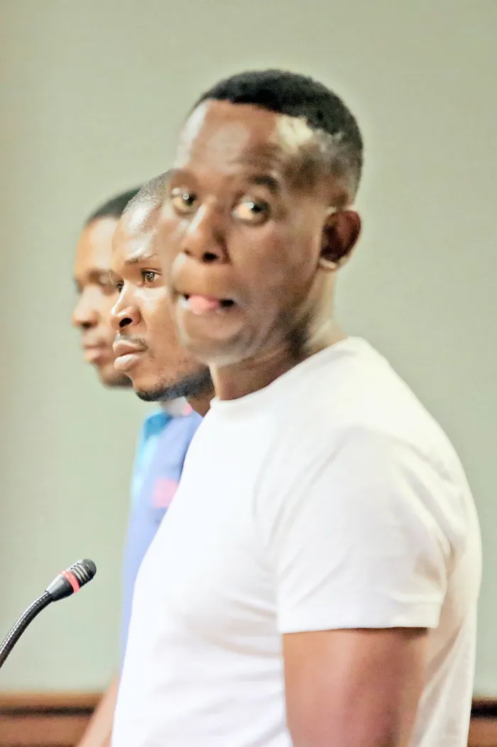 The men, Johannes Zikalala, Tulani Ngwena and Sello Molokomme, are facing charges of housebreaking and theft and were not asked to plead.