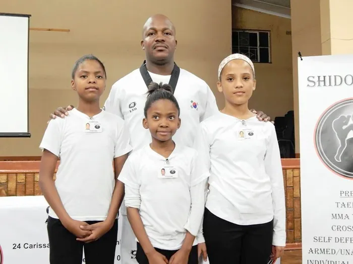 CHAMPION MATERIAL: Seen, from left are Jaydean Kaars, Kaylean Kaars and Donica Tafel with South African Taekwondo Federation president David Kok.