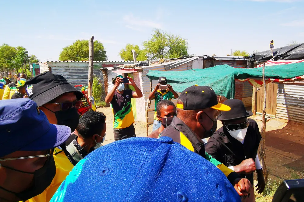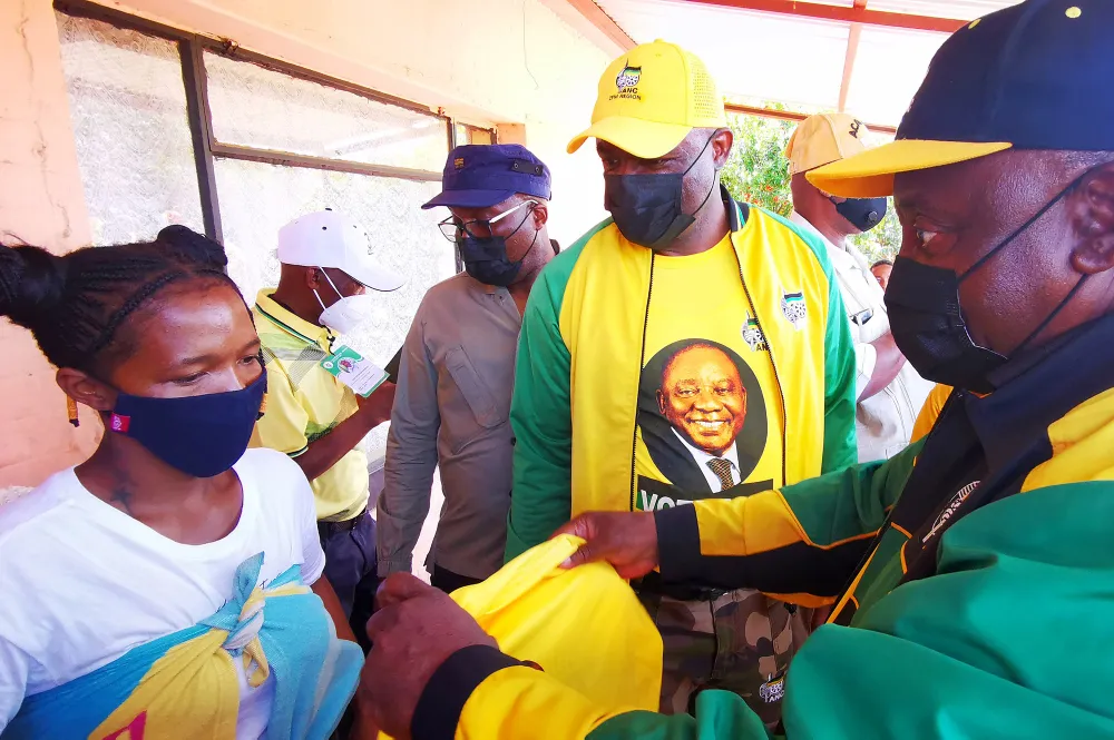 ANC T-shirts emblazoned with Ramaphosa’s face were handed out as he conducted door-to-door visits.