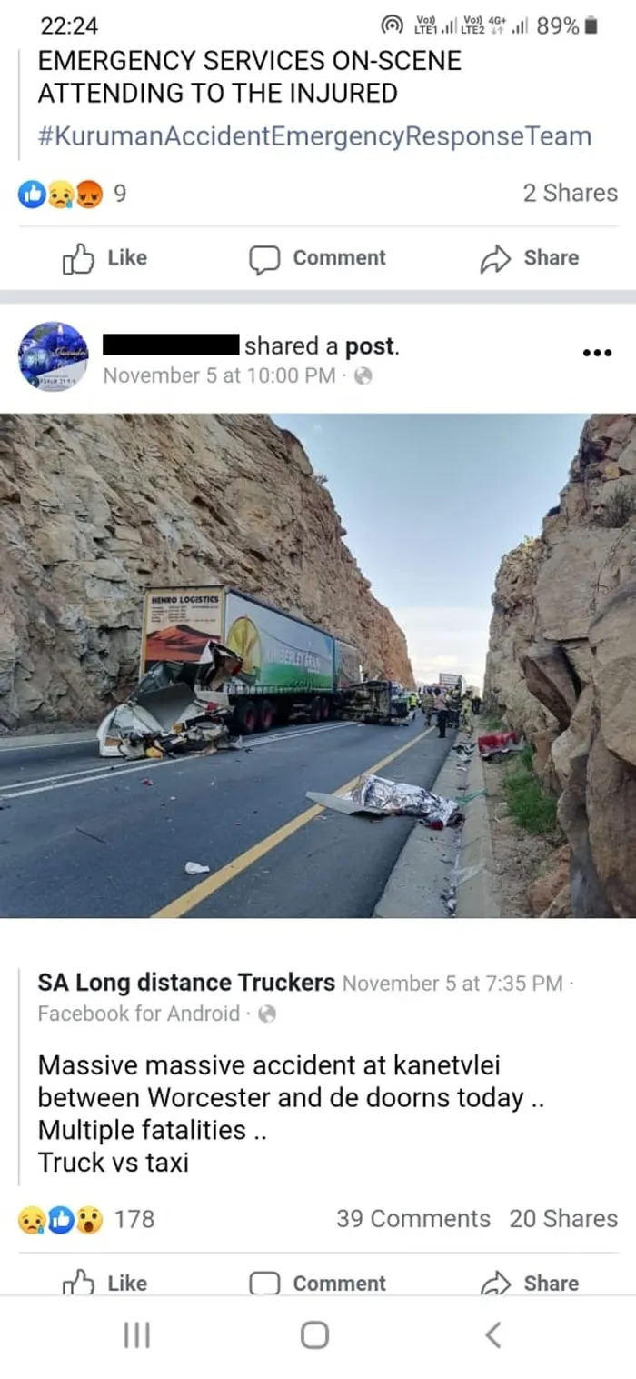 Meanwhile, a Facebook post also emerged, where an accident of a similar nature was reported to have happened on November 5 in Kanetvlei between Worcester and De Doorns, with multiple fatalities reported.