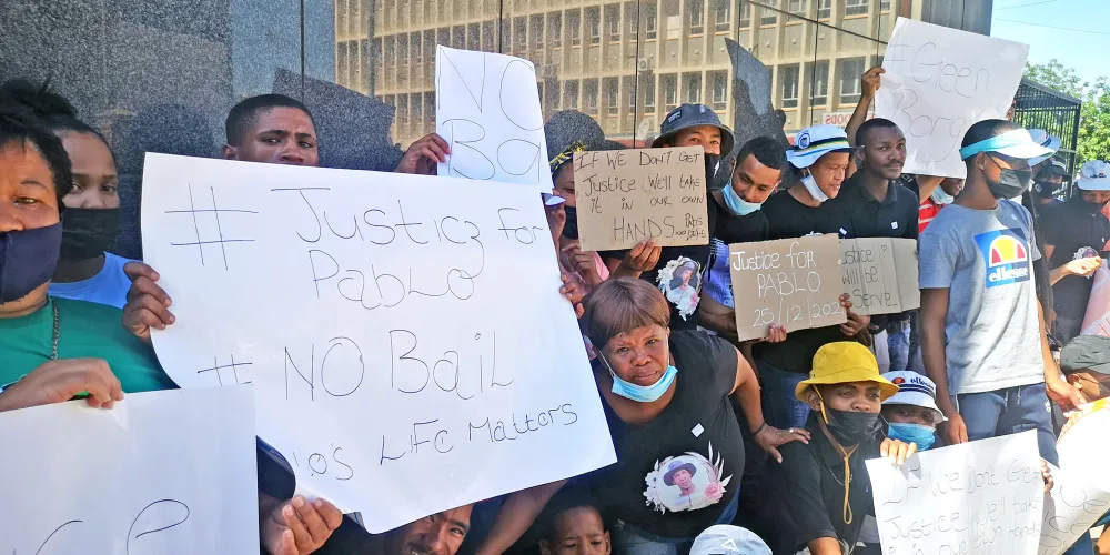 They carried placards calling for justice and many wore black or pink T-shirts bearing a picture of Van Coller.