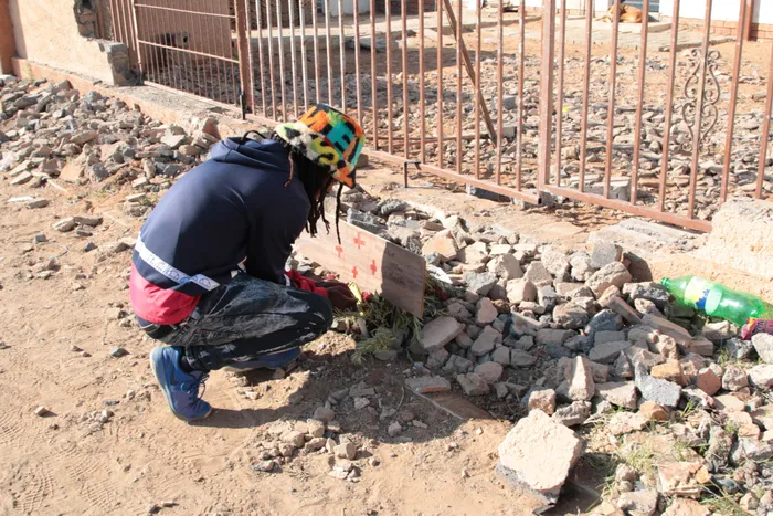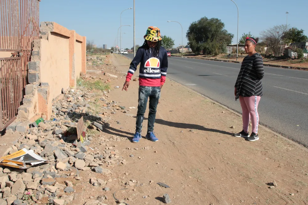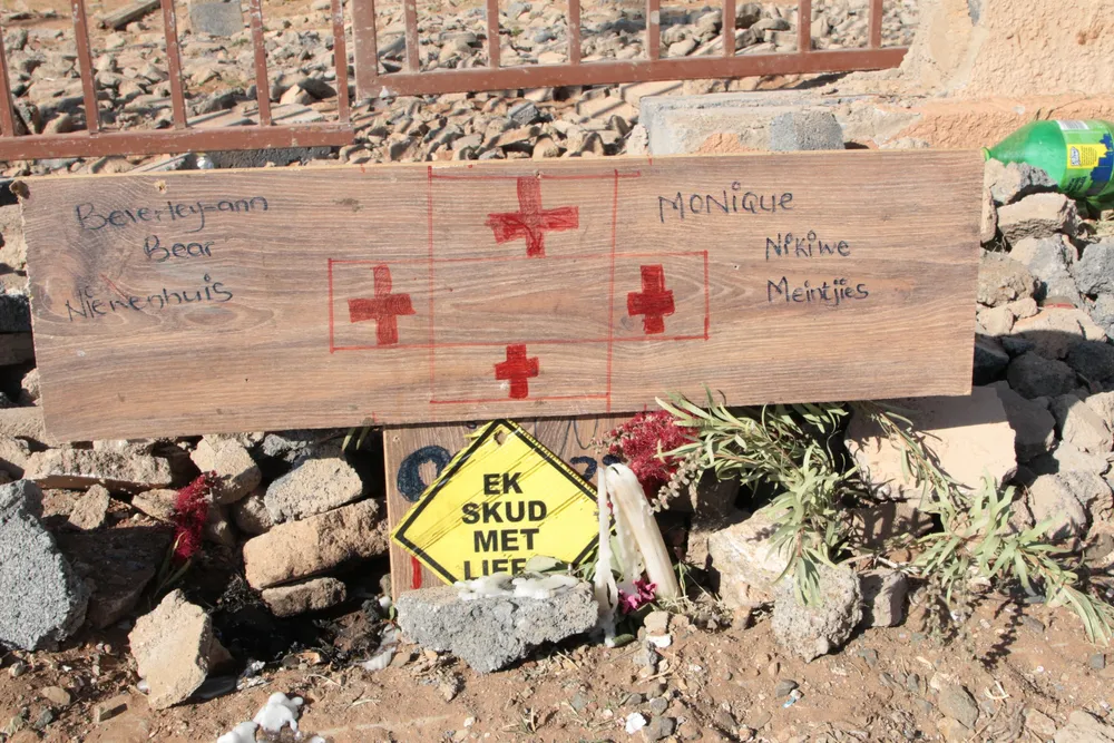 Austin Niewenhuisen at the spot where mother, Beverly-Anne Niewenhuisen, and his fiancée, Monique Meintjies, were killed.