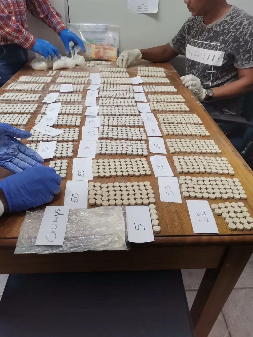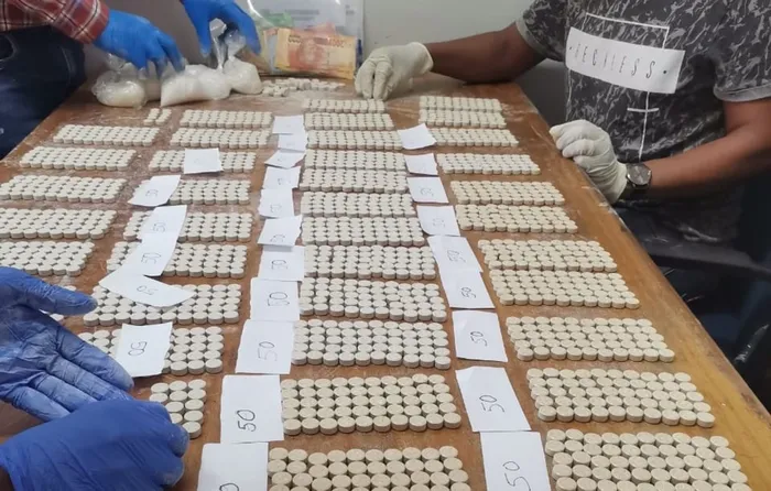“The police confiscated 2,450 mandrax tablets with an estimated street value of R180,000 and eight bags of tik valued at R45,000 and also seized an undisclosed amount of cash believed to be the proceeds of drug sales.”