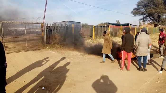 Tyres were set alight during protest action last week, with calls being made for local labourers and sub-contractors to be employed on site.