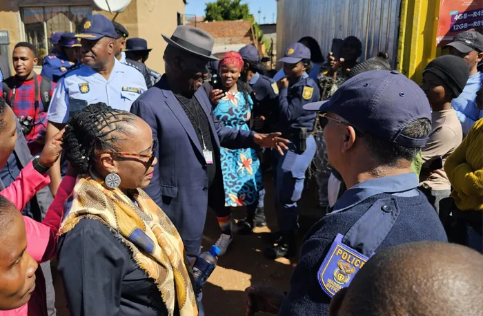 Police Minister Bheki Cele and the MEC for Safety, Transport and Liaison, Nomandla Bloem, addressing the media. Picture: Soraya Crowie