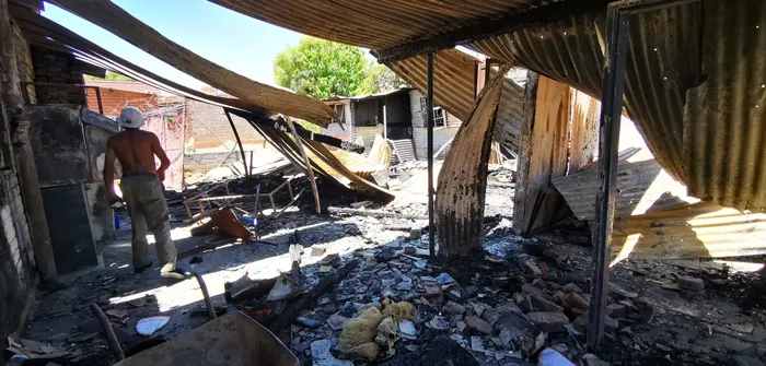 Three shanties in Cedar Road were gutted by a fire. Picture: Soraya Crowie