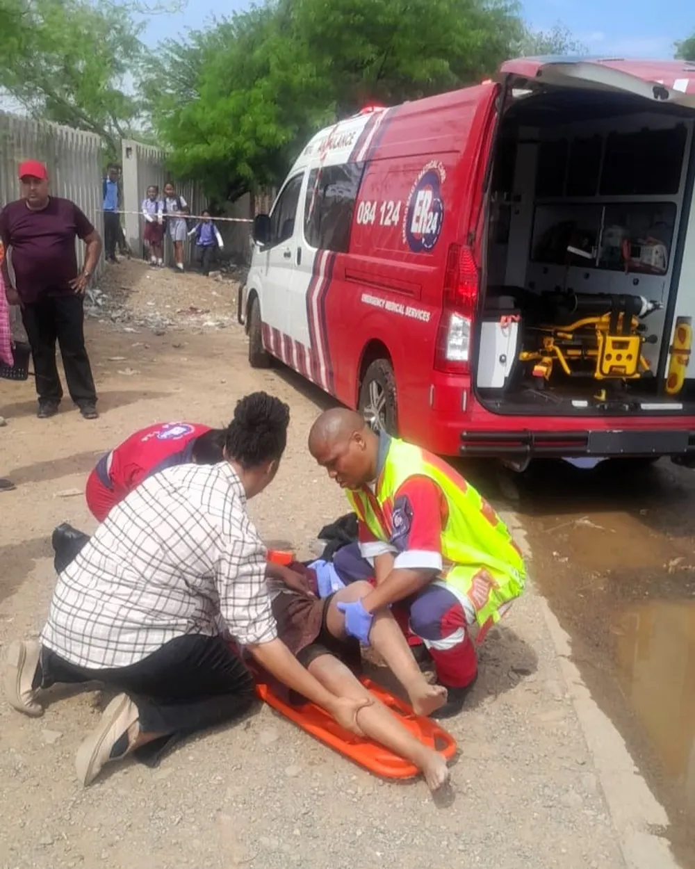 “Sol Plaatje municipal workers were attending to a burst water pipe in front of the houses near the school earlier in the day, and the road was flooded,” explained Simons.