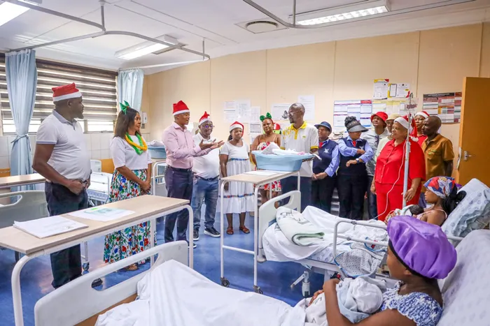 The MEC for the Department of Health Maruping Lekwene and senior managers welcomed Christmas Day babies who were born in Kimberley on December 25. Picture: Department of Health