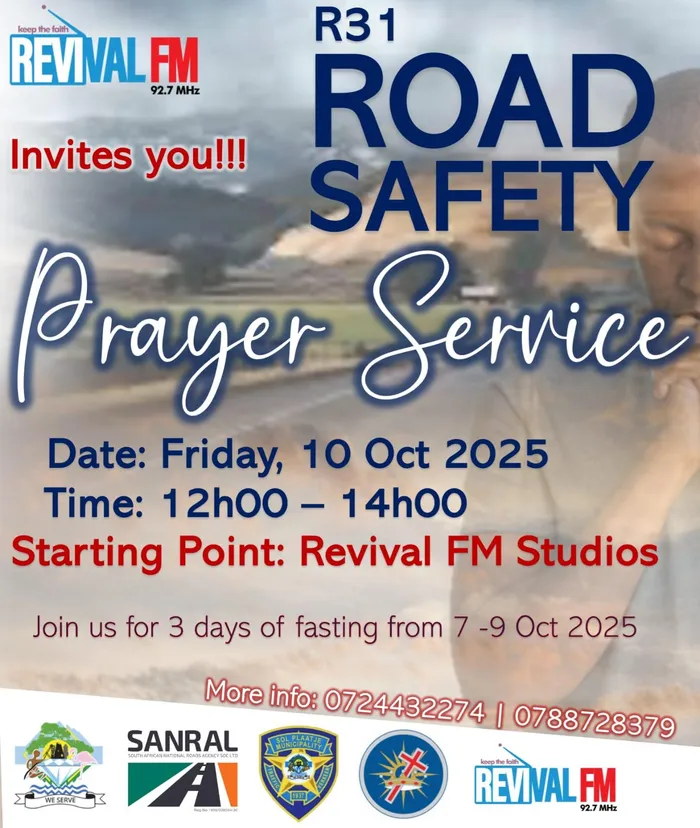 A section of the R31 between Phutanang and Platfontein will be closed on October 10 for a road safety prayer service.