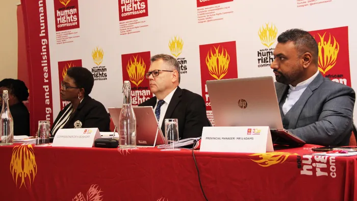 SAHRC commissioners Elspeth Khwinana, Dr Henk Boshoff and Uzair Adams.