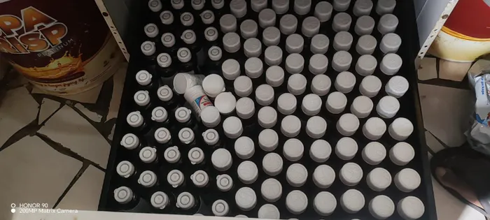 "Upon arrival, the police found a male and a female at the address and conducted a search. They discovered and confiscated: 114 bottles (100 ml) of Painagon Syrup, 100 bottles (100 ml) of Bronchleer Syrup, 100 bottles (100 ml) of Stilpain Syrup, containers with 431 tablets and 30 bottles (100 ml) of Lenazine Forte. Cash amounting to R156,921 and three cellphones were seized."