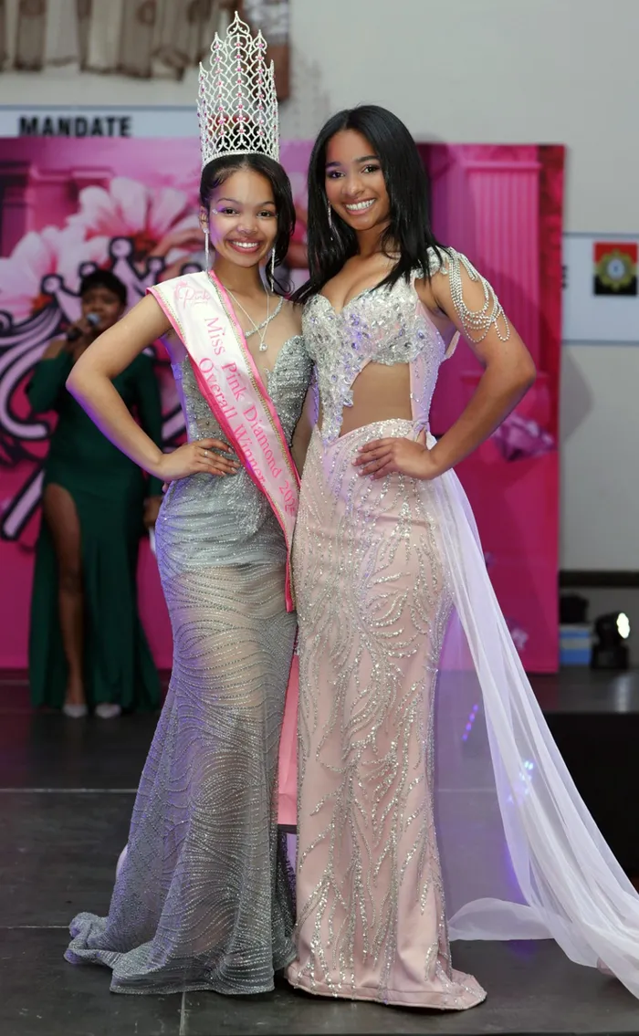 Melicia Beukes (left) from Postmasburg was selected as the overall winner. She is seen with Mishka Boughan, founder of the Miss Pink Diamond event.