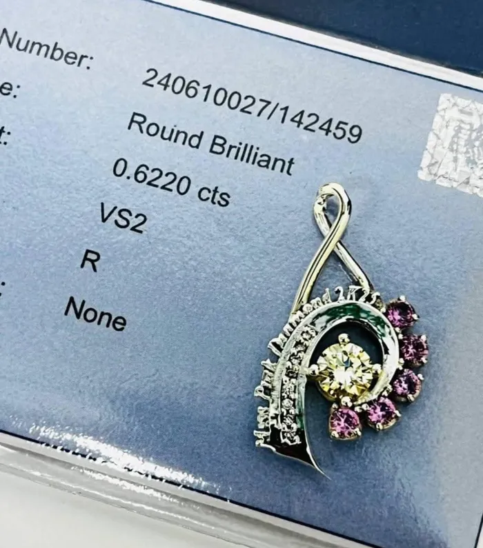 The diamond and pendant that was awarded to Melicia Beukes.