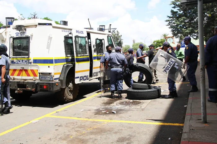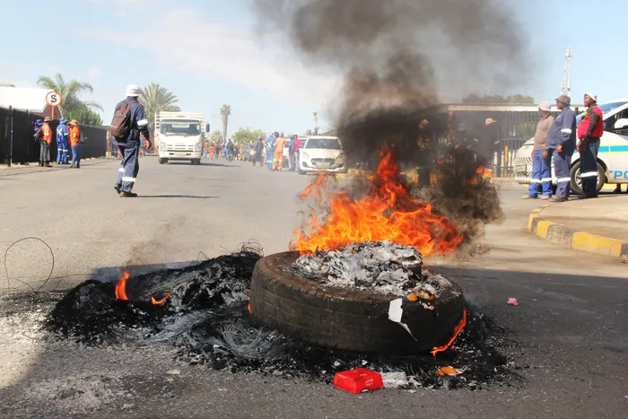 Members of the Independent Municipal and Allied Trade Union (Imatu) and the South African Municipal Workers Union (Samwu) criticised the “heavy-handed” approach of the SAPS, who fired stun grenades and rubber bullets when workers attempted to set tyres alight.