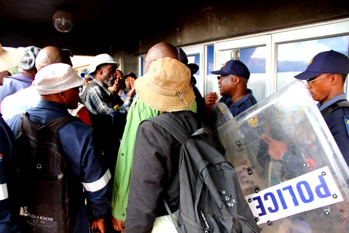 Workers tried to enter the Sol Plaatje offices.