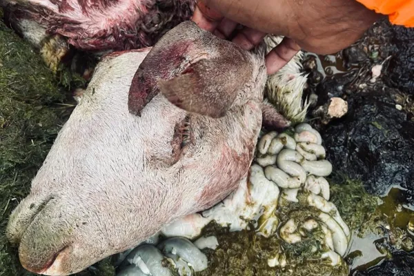 Police found evidence of a recently slaughtered sheep, including the head, intestines, hooves and skin.