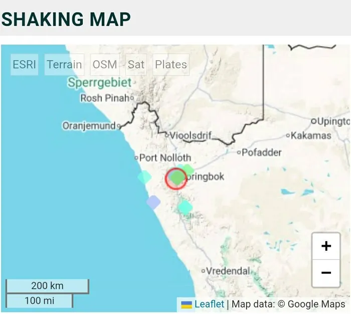 A MODERATE earthquake rattled the town of Springbok in the Northern Cape on Monday, December 8, at 5.14pm local time.