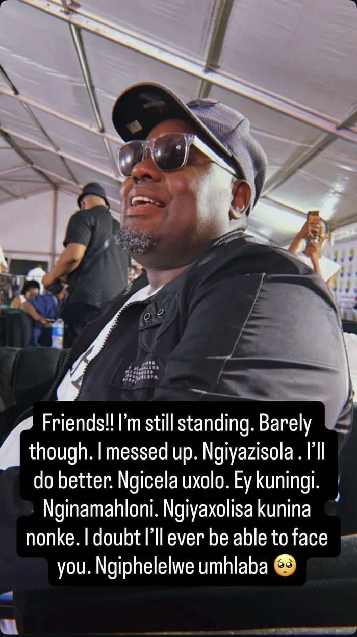 In his Instagram stories, Hlophe openly expressed his remorse, stating, “I messed up. Ngiyazisola (I regret). I’ll do better. Ngicela uxolo (Please forgive me). Ey, kuningi (It’s a lot).”