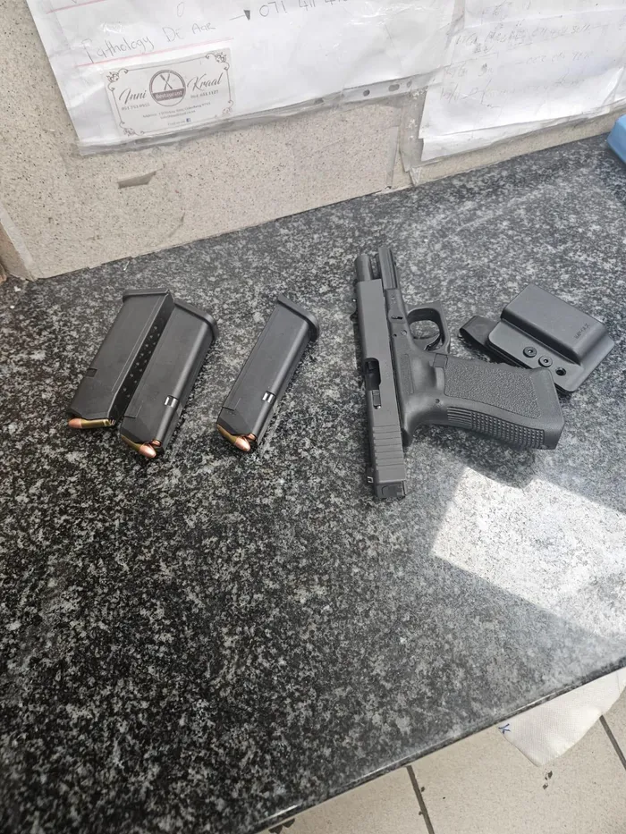 A 9mm pistol and three magazines were confiscated from one of the suspects.