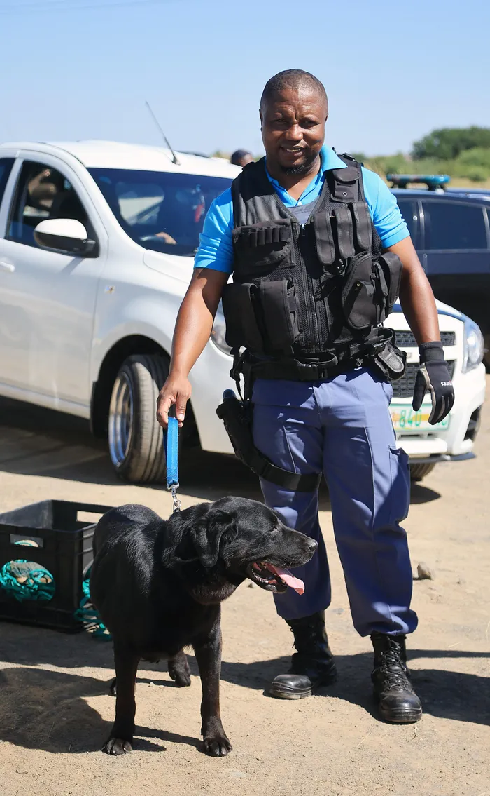 Seen is Sergeant JB Appie from the Kimberley K9 Unit with his narcotic dog Eddie, who ensured that no drugs passed by during the operation.