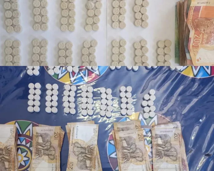 While conducting patrols along Tyson Road, officers observed suspicious activity by a group of men and stopped to search them. The search uncovered a substantial quantity of suspected mandrax tablets, with an estimated street value of R1,800, as well as cash believed to be proceeds of the illicit trade.