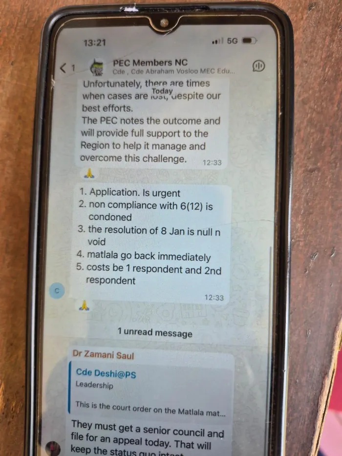 A message under Premier and ANC provincial chairperson Dr Zamani Saul’s name urged that “senior counsel should be appointed and that an appeal be lodged” on the same day.