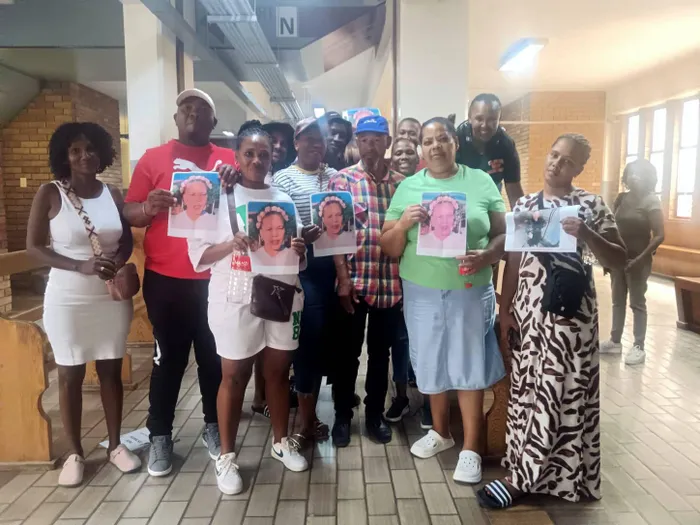 Community members held up photographs of Lawan as Visagie was led back to the holding cells.